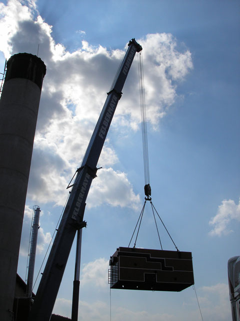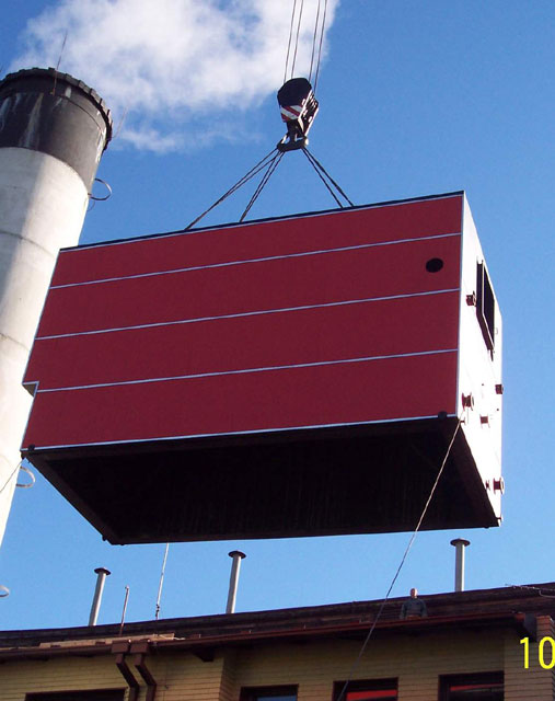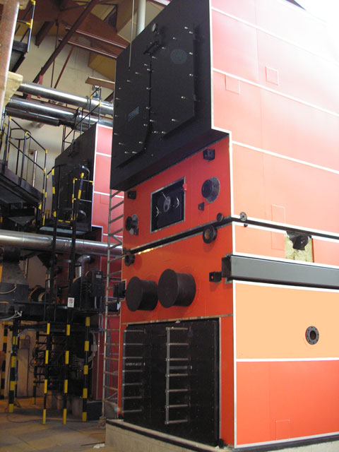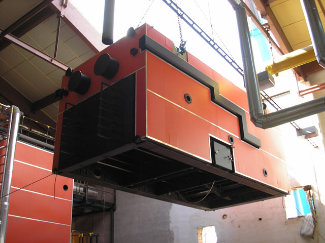 V rámci celkovej rekonštrukcie kotolne a výroby tepelnej energie drevoštiepkou sme v roku 2005 pokračovali demontážou druhého plynového kotla OKP10H a inštaláciou ďalšieho kotla BK2 na drevoštiepku, ktorý sme zaradili do skúšobnej prevádzky v decembri roku 2005. Pre čo najefektívnejšie prevádzkovanie biomasových kotlov sme pristúpili k inštalácii kontajnerovej kotlovej jednotky* o výkone 2 MW, ktorá zabezpečuje vykrývanie denných špičiek a výrobu tepla na prípravu teplej úžitkovej vody v letných mesiacoch.